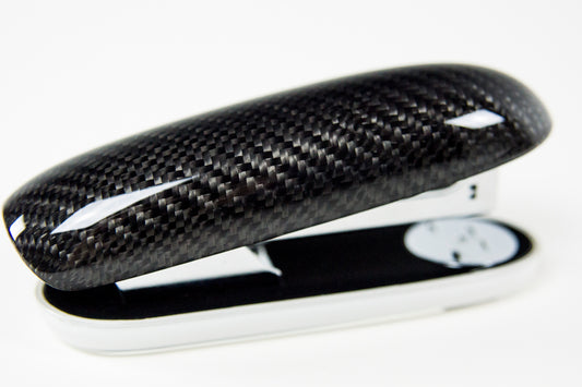 - Das gewählte Carbongewebe wird in einem speziellen Vakuumpressverfahren wie ein Furnier mit dem jeweiligen Teil verklebt.